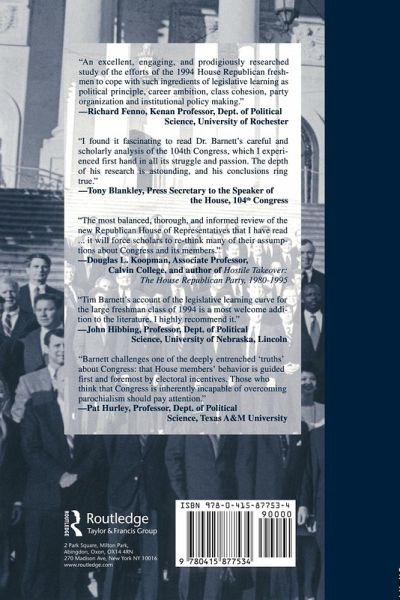 Legislative Learning breaks new theoretical and descriptive ground in examining the political perceptions, policy principles and power plays of the influential 104th Republican freshmen in the U.S. House. This even-handed book builds on the work of leading congressional scholars, and provides a detailed evaluation of coalition politics, freshmen style. Barnett shows how political environments can produce legislators who place a premium on their policy-making goals through a nuanced exploration of factors undergirding member perceptions, policy ambitions, class cohesion, and legislative learning.