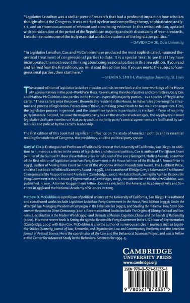 Gary W. Cox and Mathew D. McCubbins present congressional parties as a species of 'legislative cartel'. These cartels seize the rule-making power of the House to make rules governing the structure and process of legislation. This book focuses on various aspects to control the agenda.