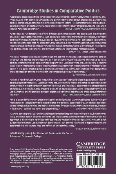 This book considers what collective and individual accountability require and provides the most extensive cross-national analysis of legislative voting undertaken to date. Drawing on extensive filed and archival research, Carey illustrates the balance between individualistic and collective representation in democracies, and how party unity in legislative voting shapes that balance.