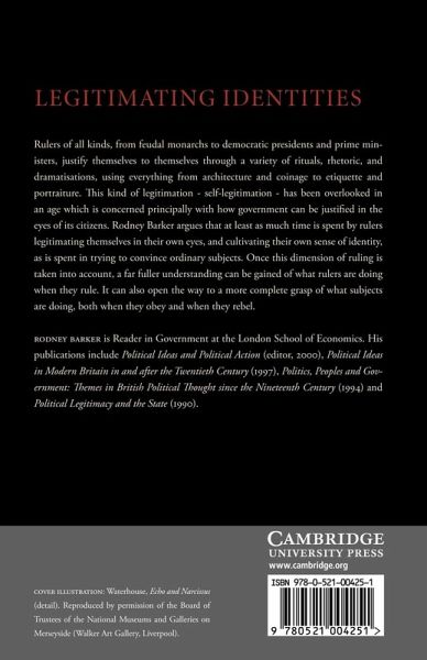 Rulers of all kinds, from feudal monarchs to democratic presidents and prime ministers, justify themselves to themselves through a variety of rituals, rhetoric, and dramatisations, using everything from architecture and coinage to etiquette and portraiture. This kind of legitimation - self-legitimation - has been overlooked in an age which is concerned principally with how government can be justified in the eyes of its citizens. In this book, Rodney Barker argues that at least as much time is spent by rulers legitimating themselves in their own eyes, and cultivating their own sense of identity, as is spent in trying to convince ordinary subjects. Once this dimension of ruling is taken into account, a far fuller understanding can be gained of what rulers are doing when they rule. It can also open the way to a more complete grasp of what subjects are doing, both when they obey and when they rebel.