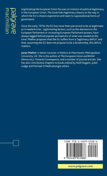 This is a study in EU legitimacy from the perspective of EU citizens. Mather argues that legitimacy is empirical: 'legitimacy only exists if people feel that it does' and that the EU is a unique and dynamic institution, hence legitimating factors are also evolutionary.