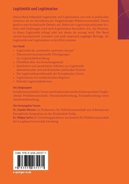 Dieses Buch behandelt Legitimität und Legitimation von und in politischen Systemen als ein Kernthema der Vergleichenden Politikwissenschaft. Damit greift es eine hochaktuelle Debatte auf. Neben der Legitimität politischer Systeme und Ordnungen wird auch Legitimation betrachtet, d.h., die Prozesse, in denen Legitimität erlangt oder mit denen sie erzeugt wird. Der Band vereint konzeptionell, normativ und auch empirisch angelegte Beiträge, die Legitimität und Legitimation politischer Systeme in den Blick nehmen.