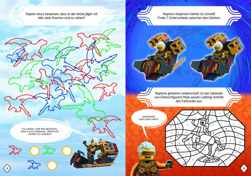 Rätselspaß mit den beliebten Helden aus der Welt von Ninjago- mit LEGO® MinifigurenLEGO® NINJAGO®-Fans erleben die neuen Charaktere hautnah und ganz in ihrem Element.Neue Gefahren bedrohen die Welt von Ninjago. Die Ninja müssen sich den Herausforderungen stellen. Hilf ihnen, gegen neue Bösewichte zu bestehen und löse dabei knifflige Rätsel. Mit den enthaltenen LEGO Minifiguren können die Geschichten sogar nachgespielt werden. Neben einer aufregenden Geschichte und lustigen Comics, die dem typischen LEGO Humor treu bleiben, wird die Rätselvielfalt jeden Knobelfan begeistern. Mit diesem Buch ist Spiel- und Rätselspaß für Kinder ab 6 Jahren vorprogrammiert.LEGO, the LEGO logo, the Minifigure, the Brick and Knob configurations and NINJAGO are trademarks of the LEGO Group.©2024 The LEGO Group.