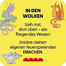 Bauen und Spielen in einem mit den neuen LEGO® KartenKartenset mit 25 zufälligen LEGO® Elementen Über 30 Karten mit Bau- und Spielideen zum Thema Magie fordern dich heraus, mit den enthaltenen 25 LEGO® Elemente kreativ zu werden. Sowohl LEGO Begeisterte als auch neue Fans haben die Möglichkeit, diese Themenwelt fantasievoll zu gestalten. Die bunten Karten bieten Aufgaben auf unterschiedlichen Niveaus, ergänzen Bestehendes oder stellen das Gebaute auf den Kopf. Egal ob allein oder gemeinsam, unterwegs oder zu Hause - Spaß und Wiederspielwert sind garantiert.Die Bau- und Spielideen der neuen LEGO® Karten rund um das Thema Magie sind für Kinder ab 6 Jahren geeignet.Kartenset bestehend aus:15 Karten - Bauprojekte. Spielidee und Bauaufgabe.10 Karten - Kannst du das? Spielidee und Bauaufgabe mit zusätzlichen Bauherausforderungen.5 Karten - Lass dich überraschen. Überraschungskarte, die etwas Neues und Unerwartetes zu dem Gebauten hinzufügt.1-5 Bonuskarten. Karten, die das Set mit Zusatzideen ergänzen.LEGO, the LEGO logo, the Minifigure and the Brick and Knob configurations are trademarks of the LEGO Group. ©2024 The LEGO Group.