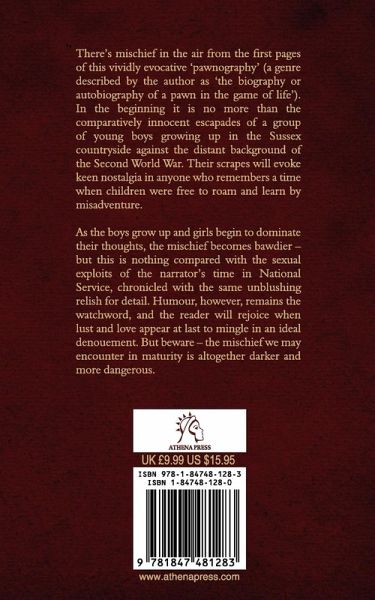 There's mischief in the air from the first pages of this vividly evocative 'pawnography' (a genre described by the author as 'the biography or autobiography of a pawn in the game of life'). In the beginning it is no more than the comparatively innocent escapades of a group of young boys growing up in the Sussex countryside against the distant background of the Second World War. Their scrapes will evoke keen nostalgia in anyone who remembers a time when children were free to roam and learn by misadventure. As the boys grow up and girls begin to dominate their thoughts, the mischief becomes bawdier - but this is nothing compared with the sexual exploits of the narrator's time in National Service, chronicled with the same unblushing relish for detail. Humour, however, remains the watchword, and the reader will rejoice when lust and love appear at last to mingle in an ideal denouement. But beware - the mischief we may encounter in maturity is altogether darker and more dangerous.