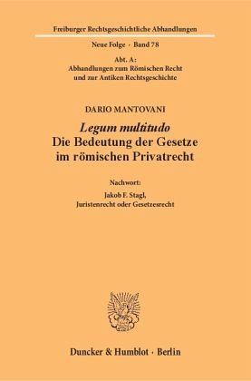 Ulrike Babusiaux: VorwortDario Mantovani: Legum multitudo. Die Bedeutung der Gesetze im römischen PrivatrechtI. Thema und Methode der UntersuchungII. Die Masse der leges publicae aus Sicht der ZeitgenossenIII. Die von Rotondi individualisierten leges publicae des Privatrechts und die Auswahl der Informationen in den QuellenIV. Eine Bestandsaufnahme der namentlich in juristischen und literarischen Quellen zitierten leges publicae des PrivatrechtsV. Die leges publicae in den Werken der JuristenVI. Leges publicae und interpretatio der JuristenVII. Geschichte der Historiographie: Die leges publicae und das römische Privatrecht zwischen römischem Recht, allgemeiner Rechtslehre und RechtssoziologieEpilogAddendum: Zur Kritik Gianni Santuccis: Argumentorum inopia - Zu Santuccis Umgang mit den Quellen zur legum multitudo -Von Santucci nicht gewürdigte Ergebnisse des HauptteilsJakob Fortunat Stagl: Nachwort - Juristenrecht oder Gesetzesrecht?1. Das Volk des Rechts2. Die Delegifizierungsthese Mantovanis3. Die perspektivische Verkürzung unserer Sicht der Römer4. Das Volk der GesetzeLiteratur- und QuellenverzeichnisQuellenverzeichnis