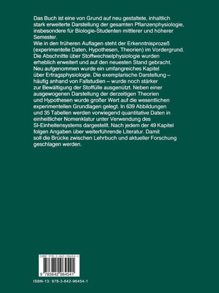 1. Zur Zielsetzung der Physiologie.- 2. Einige theoretische Grundlagen der Physiologie.- 3. Die Hierarchie der Komplexität.- 4. Die Zelle als Konstrukt.- 5. Die Zelle als morphologisches System.- 6. Die Zelle als genphysiologisches System.- 7. Die Zelle als teilungsfähiges System.- 8. Polarität - eine Grundeigenschaft der Zelle.- 9. Kern-Plasma-Wechselwirkungen bei Acetabularia.- 10. Intrazelluläre Morphogenese.- 11. Die Zelle als energetisches System.- 12. Die Zelle als metabolisches System.- 13. Photosynthese als Energiewandlung.- 14. Photosynthese als Funktion des Chloroplasten.- 15. Energiegewinnung durch Dissimilation.- 16. Die Dissimilation der Kohlenhydrate.- 17. Die Mobilisierung von Reservefett.- 18. Die Photorespiration.- 19. Die Regulation des dissimilatorischen Gaswechsels.- 20. Das Blatt als photosynthetisches System.- 21. C4-Pflanzen und CAM-Pflanzen.- 22. Stoffwechsel anorganischer Ionen.- 23. Der Stoffwechsel des Wassers.- 24. Ökologischer Kreislauf der Stoffe und der Strom der Energie.- 25. Biogenetischer Stoffwechsel.- 26. Physiologie der Entwicklung.- 27. Photomorphogenese.- 28. Wirkungen ultravioletter Strahlung.- 29. Wirkungen ionisierender Strahlung.- 30. Photomorphogenese bei Pilzen.- 31. Physiologie der Hormonwirkungen.- 32. Blütenbildung und Photoperiodismus.- 33. Physiologie der circadianen Rhythmen.- 34. Physiologie der Temperaturwirkungen.- 35. Physiologie der Seneszenz, der Ruhezustände und der Keimung.- 36. Physiologie der Regeneration.- 37. Physiologie der Transplantationen.- 38. Physiologie der Tumorbildung.- 39. Physiologie des Wasserferntransports.- 40. Physiologie des Ionentransports.- 41. Physiologie des Ferntransports organischer Moleküle.- 42. Physiologie der Bewegungen I: Freie Ortsbewegungen.- 43. Physiologie derBewegungen II: Phototropismen.- 44. Physiologie der Bewegungen III: Geotropismen.- 45. Physiologie der Bewegungen IV: Weitere Bewegungsvorgänge.- 46. Physiologie elektrischer Phänomene.- 47. Physiologie der Sexualität.- 48. Physiologie des Generationswechsels.- 49. Physiologie und Ertragsbildung.- Zitierte Literatur.