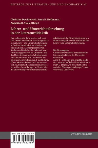 Dieser Band setzt es sich zum Ziel, derzeit bestehende Forschungsansätze zur Lehrer- und Unterrichtsforschung in der Literaturdidaktik zu bündeln und zu diskutieren. Die präsentierten Studien und Vorhaben beziehen sich auf Vermittlungsprozesse im Unterricht und das Unterrichtshandeln, Selbstkonzepte von Lehrpersonen und Lernenden, Aspekte der Lehrerbildung und -ausbildung, Wissenskonstruktionen im Literaturunterricht, literarische Sozialisationsprozesse und ihre Auswirkungen im Unterricht, die Erforschung von Unterrichtskommunikation und die Dimensionierung von Unterrichtsqualität oder Methoden der Lehrer- und Unterrichtsforschung.