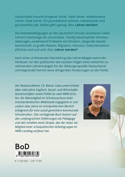 Deutschland braucht dringend Lehrer. Viele Lehrer. Ambitionierte Lehrer. Gute Lehrer. Ein grundsätzlich sicherer, interessanter und gut bezahlter Job. Stellen gibt's genug. Also: Lehrer werden!Die Arbeitsbedingungen an den deutschen Schulen erscheinen vielen Lehrern heutzutage als unzumutbar. Häufig katastrophale Schulausstattungen, zunehmend Probleme mit Schülern, steigende Gewaltbereitschaft, zu große Klassen, Migration, Inklusion, Dokumentationspflichten und und und. Also: Lehrer werden?Nach einer umfassenden Darstellung des Lehreralltages warnt der Verfasser vor den politischen wie sozialen Folgen eines weiterhin zunehmenden Lehrermangels für die `Bildungsrepublik Deutschland´ und begründet hiermit seine dringenden Forderungen an die Politik.