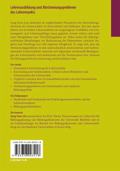 Sung-Yeun Lim analysiert in vergleichender Perspektive die Entwicklungsdynamik der Lehrermärkte in Deutschland und Südkorea. Seit den 1950er Jahren war in beiden Lehrermärkten ein ausgewogenes Verhältnis von Lehrerangebot und Lehrernachfrage kaum gegeben: Jeweils schloss sich nach einer Mangelphase eine Überfüllungsphase an. Dabei waren die bildungspolitischen Bemühungen zur Reduzierung der Disparitäten zwischen Angebot und Nachfrage nur sehr begrenzt erfolgreich. Es zeigt sich, dass die Abstimmungsprobleme in den unterschiedlich strukturierten und funktionierenden Lehrermärkten einerseits auf allgemeine strukturelle Bedingungen des Lehrermarkts und andererseits auf die Versäumnisse bzw. Grenzen der bildungspolitischen Steuerung zurückzuführen sind.