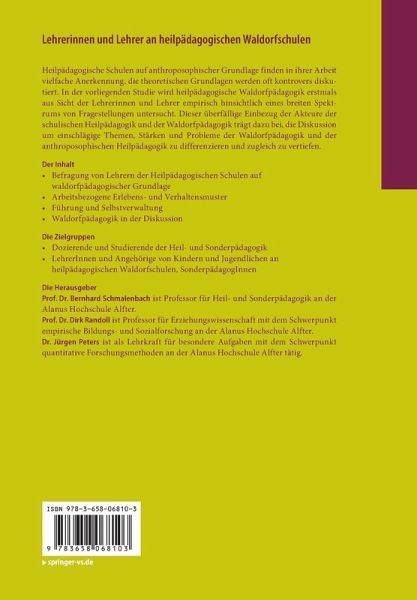 Befragung von Lehrern der Heilpädagogischen Schulen auf waldorfpädagogischer Grundlage.- Arbeitsbezogene Erlebens- und Verhaltensmuster.- Führung und Selbstverwaltung.- Waldorfpädagogik in der Diskussion.