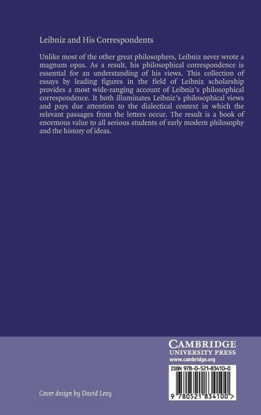 Unlike most of the other great philosophers Leibniz never wrote a magnum opus, so his philosophical correspondence is essential for an understanding of his views. This collection of essays by pre-eminent figures in the field of Leibniz scholarship is a most thorough account of Leibniz's philosophical correspondencee. It both illuminates Leibniz's philosophical views and pays due attention to the dialectical context in which the relevant passages from the letters occur. The result is a book of enormous value to all serious students of early-modern philosophy and the history of ideas.