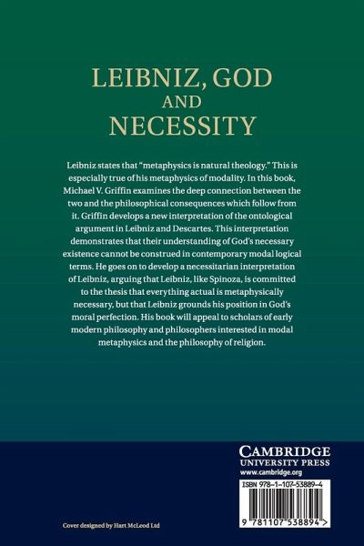 Leibniz states that 'metaphysics is natural theology', and this is especially true of his metaphysics of modality. In this book, Michael V. Griffin examines the deep connection between the two and the philosophical consequences which follow from it. Grounding many of Leibniz's modal conceptions in his theology, Griffin develops a new interpretation of the ontological argument in Leibniz and Descartes. This interpretation demonstrates that their understanding God's necessary existence cannot be construed in contemporary modal logical terms. He goes on to develop a necessitarian interpretation of Leibniz, arguing that Leibniz, like Spinoza, is committed to the thesis that everything actual is metaphysically necessary, but that Leibniz rejects Spinoza's denial of God's moral perfection. His book will appeal to scholars of early modern philosophy and philosophers interested in modal metaphysics and the philosophy of religion.