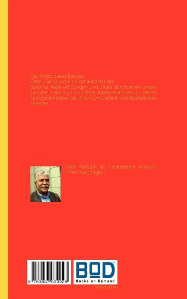 Das Motto dieses Bandes: Gehen Sie Sprüchen nicht auf den Leim! Sprüche, Redewendungen und Zitate durchziehen unsere Sprache. Leimlinge sind freie Interpretationen zu diesen Sprachelementen. Sie sollen zum Lächeln und Nachdenken anregen.