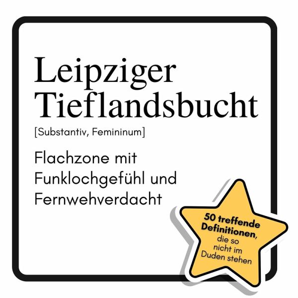 Hier trifft Fernweh auf Funkloch: Wer wissen will, wie sich das Leben zwischen Seenplatte, Auwald und Braunkohlebrikett wirklich anfühlt, kommt an "Leipziger Tieflandsbucht: Flachzone mit Funklochgefühl und Fernwehverdacht" nicht vorbei. 50 pointierte Definitionen und witzige Illustrationen zeigen, warum diese Region mehr ist als nur ein geografischer Fleck - sie ist ein Lebensgefühl zwischen Bratwurstboot und Lindenpollenlaune.Für wen dieses Buch optimal geeignet ist:- Für alle, die Leipzig und Umgebung mit einem Augenzwinkern entdecken wollen- Für Fans von regionalem Humor und liebevollen Seitenhieben- Für Menschen, die Fernweh und Heimatgefühl gleichzeitig kennenEin Geschenk für Lokalpatrioten, Zugezogene und alle, die wissen wollen, was ein Seenplattenkoller ist. "Leipziger Tieflandsbucht: Flachzone mit Funklochgefühl und Fernwehverdacht" liefert 50 humorvolle Definitionen, originelle Illustrationen, regionale Eigenheiten und jede Menge Lesespaß - perfekt zum Verschenken oderSelbstbehalten.
