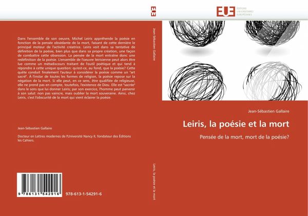 Dans l'ensemble de son oeuvre, Michel Leiris appréhende la poésie en fonction de la pensée obsédante de la mort, faisant de cette dernière le principal moteur de l'activité créatrice. Leiris voit dans sa tentative de définition de la poésie, bien plus que dans sa propre création, une façon de combattre cette obsession. La pensée de la mort entraîne donc une redéfinition de la poésie. L'ensemble de l'oeuvre leirisienne peut alors être lue comme un métadiscours traitant de l'outil poétique et qui tend à répondre à cette unique question: qu'est-ce, au fond, que la poésie? Cette quête conduit finalement l'auteur à considérer la poésie comme un "art sacré". À l'instar de toutes les formes de religion, la poésie repose sur la négation de la mort. Si elle peut, en ce sens, être qualifiée de religieuse, elle ne prend pas en compte, toutefois, l'existence de Dieu. Elle est "sacrée" dans le sens que lui donner Leiris; par son exercice, l'homme peut parvenir à son salut: non pas vaincre, mais oublier la mort souveraine. Ainsi, chez Leiris, c'est l'obscurité de la mort qui vient éclairer la poésie.