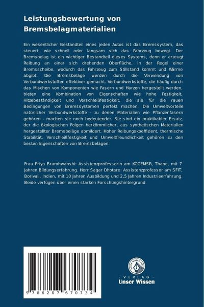 Ein wesentlicher Bestandteil eines jeden Autos ist das Bremssystem, das steuert, wie schnell oder langsam sich das Fahrzeug bewegt. Der Bremsbelag ist ein wichtiger Bestandteil dieses Systems, denn er erzeugt Reibung an einer sich drehenden Oberfläche, in der Regel einer Bremsscheibe, wodurch das Fahrzeug zum Stillstand kommt und Wärme abgibt. Die Bremsbeläge werden durch die Verwendung von Verbundwerkstoffen effektiver gemacht. Verbundwerkstoffe, die häufig durch das Mischen von Komponenten wie Fasern und Harzen hergestellt werden, bieten eine Kombination von Eigenschaften wie hohe Festigkeit, Hitzebeständigkeit und Verschleißfestigkeit, die sie für die rauen Bedingungen von Bremssystemen perfekt machen. Die Umweltvorteile natürlicher Verbundwerkstoffe - zu denen Materialien wie Pflanzenfasern gehören - machen sie noch bedeutender. Sie sind ein praktikabler Ersatz, der die ökologischen Folgen herkömmlicher, aus synthetischen Materialien hergestellter Bremsbeläge abmildert. HoherReibungskoeffizient, thermische Stabilität, Verschleißfestigkeit und Umweltfreundlichkeit gehören zu den besten Eigenschaften von Bremsbelägen.