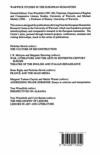 List of Illustrations - Preface - Notes on Contributors - Introduction; C.Barrett - Funeral Games of Homer and Vergil; T.J.Winnifrith - Leisure and Civilization in English Literature; E.Larrissy - Up Tails All: Leisure, Pleasure and Paranoia in Kenneth Grahame's The Wind in the Willows; G.Hyde - P.G.Wodehouse: The Case of Leisure as the Sole Topic of an Author's Output; S.J.S.Ickringill - Leisure in Western Painting; C.Barrett - Audiences, Art and Theatre: The Justification of Leisure and Images of the Eighteenth Century English Stage; S.West - Harold Abrahams: Athlete, Author and Amateur; J.Bromhead - 'To the Glory that was Greece': Classical Images in Public School Athletics; M.Tozer - Lamentable Barbarians and Pitiful Sheep: Rhetoric of Protest in Late Victorian and Edwardian 'Oxbridge'; J.A.Mangan