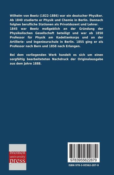 Wilhelm von Beetz (1822-1886) war ein deutscher Physiker. Ab 1840 studierte er Physik und Chemie in Berlin. Dannach folgten berufliche Stationen als Privatdozent und Lehrer.