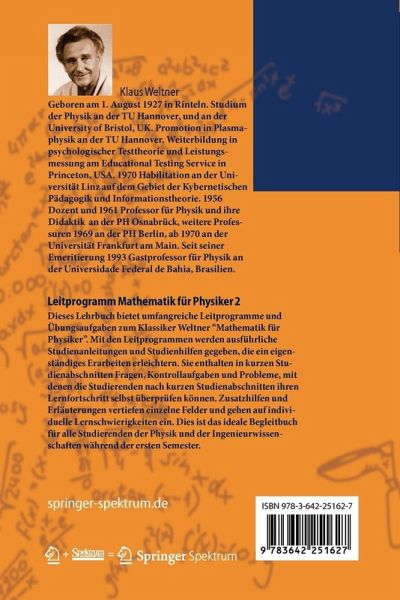 Dieses Lehrbuch bietet umfangreiche Leitprogramme und Übungsaufgaben zum Klassiker Weltner "Mathematik für Physiker". Mit den Leitprogrammen werden ausführliche Studienanleitungen und Studienhilfen gegeben, die ein eigenständiges Erarbeiten erleichtern. Sie enthalten in kurzen Studienabschnitten Fragen, Kontrollaufgaben und Probleme, mit denen die Studierenden nach kurzen Studienabschnitten ihren Lernfortschritt selbst überprüfen können. Zusatzhilfen und Erläuterungen vertiefen einzelne Felder und gehen auf individuelle Lernschwierigkeiten ein. Dies ist das ideale Begleitbuch für alle Studierenden der Physik und der Ingenieurwissenschaften während der ersten Semester.