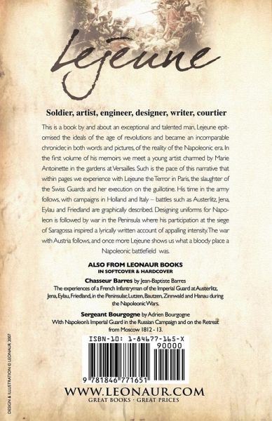 Soldier, artist, engineer, designer, writer, courtier This is a book by and about an exceptional and talented man, Lejeune epitomised the ideals of the age of revolutions and became an incomparable chronicler, in both words and pictures, of the reality of the Napoleonic era. In the fi rst volume of his memoirs we meet a young artist charmed by Marie Antoinette in the gardens at Versailles. Such is the pace of this narrative that within pages we experience with Lejeune the Terror in Paris, the slaughter of the Swiss Guards and her execution on the guillotine. His time in the army follows, with campaigns in Holland and Italy - battles such as Austerlitz, Jena, Eylau and Friedland are graphically described. Designing uniforms for Napoleon is followed by war in the Peninsula where his participation at the siege of Saragossa inspired a lyrically written account of appalling intensity. The war with Austria follows, and once more Lejeune shows us what a bloody place a Napoleonic battlefield was.