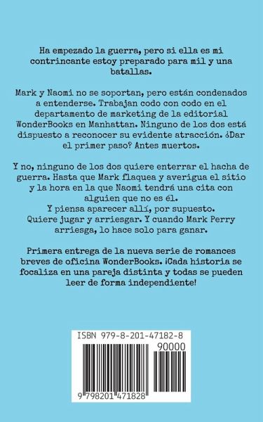 Ha empezado la guerra, pero si ella es mi contrincante estoy preparado para mil y una batallas. Mark y Naomi no se soportan, pero están condenados a entenderse. Trabajan codo con codo en el departamento de marketing de la editorial WonderBooks en Manhattan. Ninguno de los dos está dispuesto a reconocer su evidente atracción. ¿Dar el primer paso? Antes muertos. Y no, ninguno de los dos quiere enterrar el hacha de guerra. Hasta que Mark flaquea y averigua el sitio y la hora en la que Naomi tendrá una cita con alguien que no es él. Y piensa aparecer allí, por supuesto. Quiere jugar y arriesgar. Y cuando Mark Perry arriesga, lo hace solo para ganar. Primera entrega de la nueva serie de romances breves de oficina WonderBooks. ¡Cada historia se focaliza en una pareja distinta y todas se pueden leer de forma independiente!
