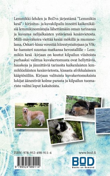 Lemmikki-lehden ja BoD:n järjestämä Lemmikin kesä - kirjoitus- ja kuvakilpailu innoitti kaikenikäisiä lemmikinomistajia lähettämään oman tarinansa ja kuvansa nelijalkaisten ystäviensä kesänvietosta. Milli-mäyräkoira viettää kesää mökillä ja mummolassa, Oskari-kissa verestää hiirestystaitojaan ja Vikke-hamsteri suuntaa matkansa hevostallille Lemmikin kesä -kirjaan on kootut kilpailun viisitoista parhaaksi valittua kuvakertomusta ovat hellyttäviä, hauskoja ja jännittäviä tarinoita kaikenlaisten lemmikkieläinten kesänvietosta, kissasta afrikkalaiseen kääpiösiiliin. Kirjaan valituista kuvakertomuksista lukijat äänestivät kolme parasta ja kilpailun tuomaristo valitsi loput kaksitoista.