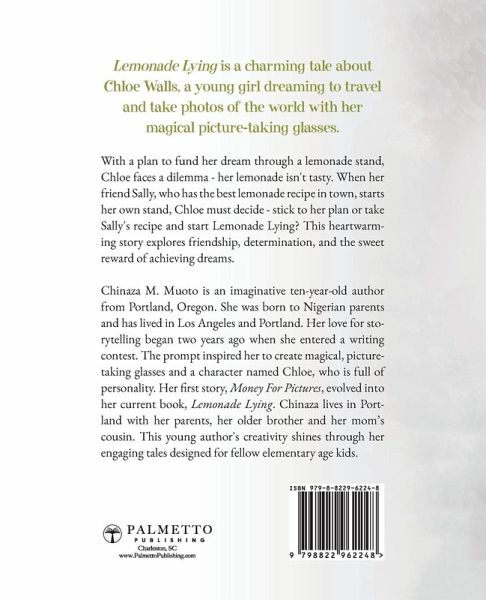 Chloe Walls' Global Photo Dream: Will She Proceed with a Lemonade Plan Despite Poor Skills, Or Will She Start Lemonade Lying Meet Chloe Walls, an ambitious young girl with an extraordinary dream - to traverse the globe, capturing its beauty through her magical picture-taking glasses. To fund this grand adventure, Chloe hatches a plan to set up a lemonade stand. There's just one tiny hiccup. Chloe's lemonade-making abilities are, well, less than refreshing. Enter Sally Bake, Chloe's best friend who has the tastiest lemonade recipe in their small town. Sally has similar plans of starting her own lemonade stand. Now, Chloe is left at the crossroads of a dilemma. Should she continue with her original plan, risking the success of her dream due to her subpar lemonade? Or should she team up with Sally for her recipe, potentially turning her dream into a reality? Lemonade Lying is a captivating journey of friendship, dreams, and the sweet taste of success. As Chloe navigates the ups and downs of her lemonade stand venture, readers will find themselves cheering for her, hoping that her thirst for travel will soon be quenched. Along the way, they'll discover the importance of teamwork, the value of persistence, and that sometimes, the best-laid plans require a bit of improvisation. At the heart of this story is a powerful message: it's okay to seek help when our dreams seem too big to achieve on our own. As Chloe and Sally's story unfolds, readers will learn that true friendship is about supporting each other's dreams, even if it means stirring up a little lemonade lying. Join Chloe and Sally in this heartwarming tale as they squeeze, stir, and sell their way towards their dreams. Lemonade Lying is more than just a story about a lemonade stand; it's a story about friendship, dreams, and the lengths we're willing to go to make them come true. So, will Chloe stick to her original plan or will she start lemonade lying? There's only one way to find out - dive into the refreshing and inspiring world of Lemonade Lying. Get ready for a journey that's as sweet and tangy as a glass of freshly-squeezed lemonade.
