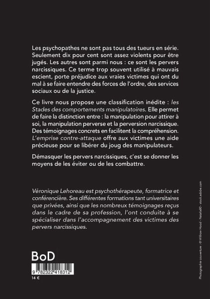Les psychopathes ne sont pas tous des tueurs en série. Seulement dix pour cent sont assez violents pour être jugés. Les autres sont parmi nous : ce sont les pervers narcissiques. Ce terme trop souvent utilisé à mauvais escient, porte préjudice aux vraies victimes qui ont du mal à se faire entendre des forces de l'ordre, des services sociaux ou de la justice.Ce livre nous propose une classification inédite : les Stades des comportements manipulatoires. Elle permet de faire la distinction entre : la manipulation pour attirer à soi, la manipulation perverse et la perversion narcissique. Des témoignages concrets en facilitent la compréhension. L'emprise contre-attaque offre aux victimes une aide précieuse pour se libérer du joug des manipulateurs.Démasquer les pervers narcissiques, c'est se donner les moyens de les éviter ou de les combattre.