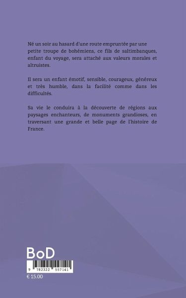 Né un soir au hasard d'une route empruntée par une petite troupe de bohémiens, ce fils de saltimbanques, enfant du voyage, sera attaché aux valeurs morales et altruistes. Il sera un enfant émotif, sensible, courageux, généreux et très humble, dans la facilité comme dans les difficultés. Sa vie le conduira à la découverte de régions aux paysages enchanteurs, de monuments grandioses, en traversant une grande et belle page de l'histoire de France.