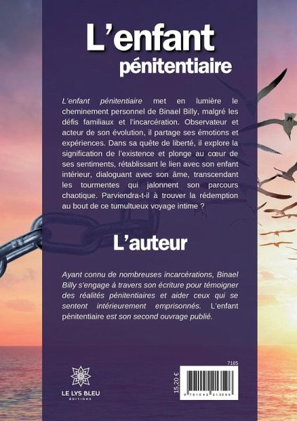 L¿enfant pénitentiaire met en lumière le cheminement personnel de Binael Billy, malgré les défis familiaux et l¿incarcération. Observateur et acteur de son évolution, il partage ses émotions et expériences. Dans sa quête de liberté, il explore la signification de l¿existence et plonge au c¿ur de ses sentiments, rétablissant le lien avec son enfant intérieur, dialoguant avec son âme, transcendant les tourmentes qui jalonnent son parcours chaotique. Parviendra-t-il à trouver la rédemption au bout de ce tumultueux voyage intime ?