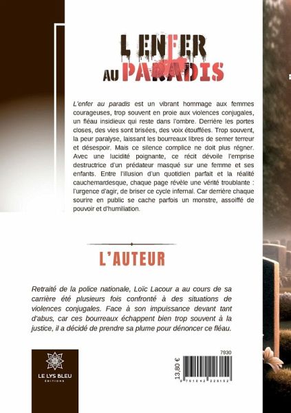 L¿enfer au paradis est un vibrant hommage aux femmes courageuses, trop souvent en proie aux violences conjugales, un fléau insidieux qui reste dans l¿ombre. Derrière les portes closes, des vies sont brisées, des voix étouffées. Trop souvent, la peur paralyse, laissant les bourreaux libres de semer terreur et désespoir. Mais ce silence complice ne doit plus régner. Avec une lucidité poignante, ce récit dévoile l¿emprise destructrice d¿un prédateur masqué sur une femme et ses enfants. Entre l¿illusion d¿un quotidien parfait et la réalité cauchemardesque, chaque page révèle une vérité troublante : l¿urgence d¿agir, de briser ce cycle infernal. Car derrière chaque sourire en public se cache parfois un monstre, assoiffé de pouvoir et d¿humiliation.