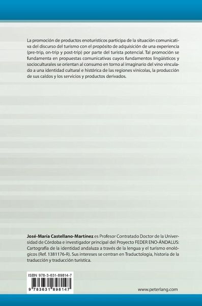 José-María Castellano-Martínez es Profesor Contratado Doctor de la Universidad de Córdoba e investigador principal del Proyecto FEDER ENO-ÁNDALUS: Cartografía de la identidad andaluza a través de la lengua y el turismo enológicos (Ref. 1381176-R). Sus intereses se centran en Traductología, historia de la traducción y traducción turística.