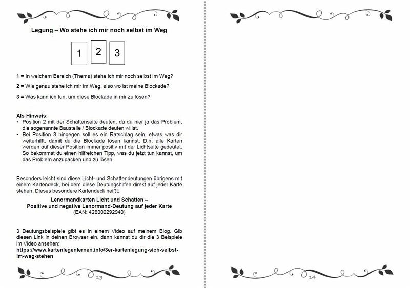 Es bietet reichlich Platz zum Notieren der Legeart und wenn du magst auch für ein Beispiel, das du selbst oder jemand anderes gedeutet hat.