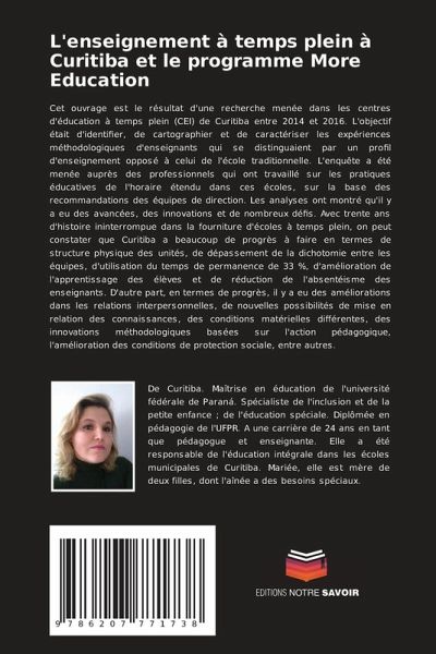 Cet ouvrage est le résultat d'une recherche menée dans les centres d'éducation à temps plein (CEI) de Curitiba entre 2014 et 2016. L'objectif était d'identifier, de cartographier et de caractériser les expériences méthodologiques d'enseignants qui se distinguaient par un profil d'enseignement opposé à celui de l'école traditionnelle. L'enquête a été menée auprès des professionnels qui ont travaillé sur les pratiques éducatives de l'horaire étendu dans ces écoles, sur la base des recommandations des équipes de direction. Les analyses ont montré qu'il y a eu des avancées, des innovations et de nombreux défis. Avec trente ans d'histoire ininterrompue dans la fourniture d'écoles à temps plein, on peut constater que Curitiba a beaucoup de progrès à faire en termes de structure physique des unités, de dépassement de la dichotomie entre les équipes, d'utilisation du temps de permanence de 33 %, d'amélioration de l'apprentissage des élèves et de réduction de l'absentéisme des enseignants. D'autre part, en termes de progrès, il y a eu des améliorations dans les relations interpersonnelles, de nouvelles possibilités de mise en relation des connaissances, des conditions matérielles différentes, des innovations méthodologiques basées sur l'action pédagogique, l'amélioration des conditions de protection sociale, entre autres.