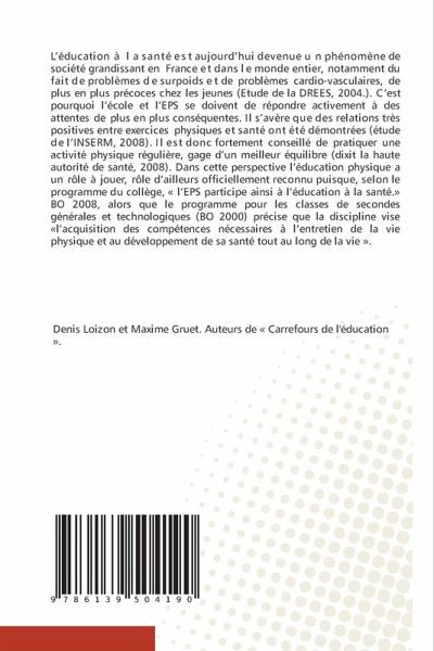 L'éducation à la santé est aujourd'hui devenue un phénomène de société grandissant en France et dans le monde entier, notamment du fait de problèmes de surpoids et de problèmes cardio-vasculaires, de plus en plus précoces chez les jeunes (Etude de la DREES, 2004.). C'est pourquoi l'école et l'EPS se doivent de répondre activement à des attentes de plus en plus conséquentes. Il s'avère que des relations très positives entre exercices physiques et santé ont été démontrées (étude de l'INSERM, 2008). Il est donc fortement conseillé de pratiquer une activité physique régulière, gage d'un meilleur équilibre (dixit la haute autorité de santé, 2008). Dans cette perspective l'éducation physique a un rôle à jouer, rôle d'ailleurs officiellement reconnu puisque, selon le programme du collège, « l'EPS participe ainsi à l'éducation à la santé.» BO 2008, alors que le programme pour les classes de secondes générales et technologiques (BO 2000) précise que la discipline vise «l'acquisition des compétences nécessaires à l'entretien de la vie physique et au développement de sa santé tout au long de la vie ».