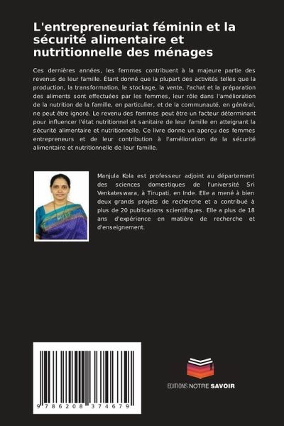 Ces dernières années, les femmes contribuent à la majeure partie des revenus de leur famille. Étant donné que la plupart des activités telles que la production, la transformation, le stockage, la vente, l'achat et la préparation des aliments sont effectuées par les femmes, leur rôle dans l'amélioration de la nutrition de la famille, en particulier, et de la communauté, en général, ne peut être ignoré. Le revenu des femmes peut être un facteur déterminant pour influencer l'état nutritionnel et sanitaire de leur famille en atteignant la sécurité alimentaire et nutritionnelle. Ce livre donne un aperçu des femmes entrepreneurs et de leur contribution à l'amélioration de la sécurité alimentaire et nutritionnelle de leur famille.