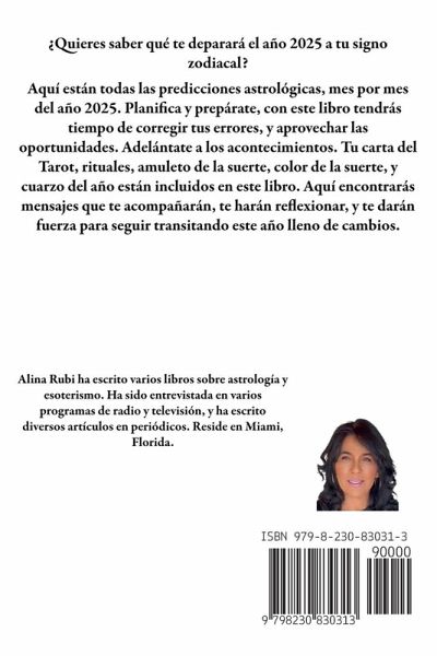 ¿Quieres saber qué te deparará el año 2025 a tu signo zodiacal? Aquí están todas las predicciones astrológicas, mes por mes del año 2025. Planifica y prepárate, con este libro tendrás tiempo de corregir tus errores, y aprovechar las oportunidades. Adelántate a los acontecimientos. Tu carta del Tarot, rituales, amuleto de la suerte, color de la suerte, y cuarzo del año están incluidos en este libro. Aquí encontrarás mensajes que te acompañarán, te harán reflexionar, y te darán fuerza para seguir transitando este año lleno de cambios.