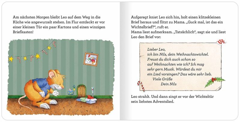 Eines Morgens entdeckt er eine winzige Tür im Flur - mit Umzugskartons, Briefkasten und einem echten Wichtelbrief! Heimlich ist Nils, der Weihnachtswichtel, bei Leo eingezogen und bringt Magie in die Adventszeit. Die beiden erleben kleine Überraschungen, schöne Rituale und jede Menge Vorfreude bis Weihnachten. Eine herzerwärmende Pappbilderbuch-Geschichte über Wichtelzauber, Freundschaft und die kleinen Wunder der Vorweihnachtszeit - liebevoll erzählt für Kinder ab 3 Jahren.