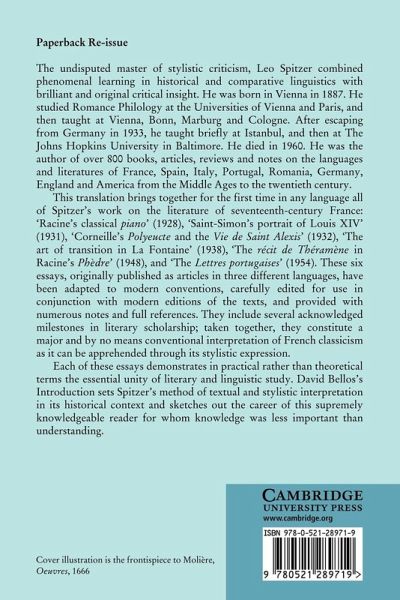 This translation brings together for the first time in any language all of Spitzer's work on the literature of seventeenth-century France
