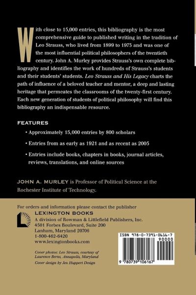 With over 10,000 entries identifying work of hundreds of Strauss's students, and their students' students, this bibliography is the most-indeed, the only-comprehensive guide to published writing in the tradition of Leo Strauss. Murley includes Strauss's own complete bibliography and that of one of his most revered students, George Anastaplo.