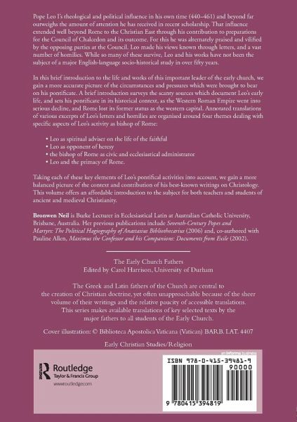 Pope Leo I's theological and political influence in his own time (440-461) and beyond far outweighs the amount of attention he has received in recent scholarship. That influence extended well beyond Rome to the Christian East through his contribution to preparations for the Council of Chalcedon and its outcome. For this he was alternately praised and vilified by the opposing parties at the Council. Leo made his views known through letters, and a vast number of homilies. While so many of these survive, Leo and his works have not been the subject of a major English-language socio-historical study in over fifty years. In this brief introduction to the life and works of this important leader of the early church, we gain a more accurate picture of the circumstances and pressures which were brought to bear on his pontificate. A brief introduction surveys the scanty sources which document Leo's early life, and sets his pontificate in its historical context, as the Western Roman Empire went into serious decline, and Rome lost its former status as the western capital. Annotated translations of various excerpts of Leo's letters and homilies are organised around four themes dealing with specific aspects of Leo's activity as bishop of Rome: Leo as spiritual adviser on the life of the faithful Leo as opponent of heresy the bishop of Rome as civic and ecclesiastical administrator Leo and the primacy of Rome. Taking each of these key elements of Leo's pontifical activities into account, we gain a more balanced picture of the context and contribution of his best-known writings on Christology. This volume offers an affordable introduction to the subject for both teachers and students of ancient and medieval Christianity.
