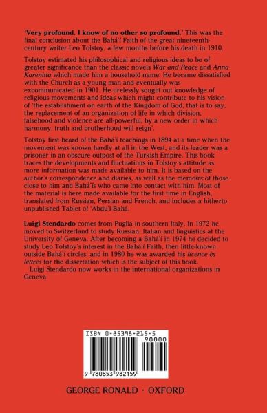 Tolstoy first heard of the Bahá'í teachings in 1894 at a time when the movement was hardly known. This book traces the developments and fluctuations in Tolstoy's attitude as more information was made available to him. It is based on the author's correspondence and diaries, as well as the memoirs of those close to him and Bahá'ís who came into contact with him.