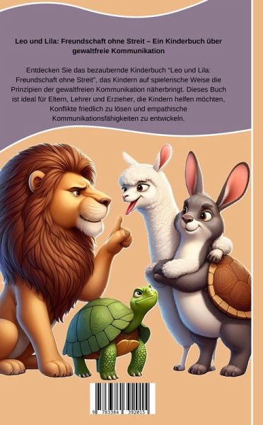 "Leo und Lila: Freundschaft ohne Streit - Ein Kinderbuch über gewaltfreie Kommunikation" erzählt die herzergreifende Geschichte zweier Freunde, die lernen, ihre Konflikte ohne Streit zu lösen. Durch liebevolle Illustrationen und einfache, verständliche Sprache zeigt dieses Buch Kindern, wie sie ihre Gefühle ausdrücken und aufeinander zugehen können. Leo und Lila führen kleine Leser auf eine Reise der emotionalen Intelligenz, indem sie ihnen wichtige Werkzeuge zur gewaltfreien Kommunikation nahebringen. Ein unverzichtbares Buch für Eltern und Erzieher, die ihren Kindern beibringen möchten, wie man harmonische und respektvolle Beziehungen aufbaut.Erstleser: Kinder, die gerade beginnen, selbstständig zu lesen, da das Buch eine einfache und zugängliche Sprache verwendet.Kinder, die lernen wollen, ihre Gefühle auszudrücken: Jungen und Mädchen, die Unterstützung dabei benötigen, ihre Emotionen zu erkennen und gewaltfreie Kommunikationsstrategien zu erlernen.