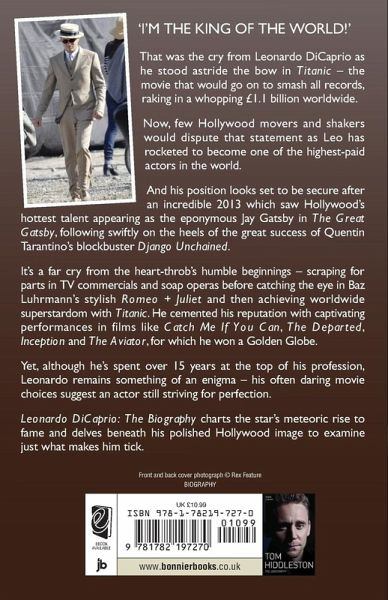 I'M THE KING OF THE WORLD' That was the cry from Leonardo DiCaprio as he stood astride the bow in Titanic - the movie that would go on to smash all records, raking in a whopping GBP1.1 billion worldwide. Now, few Hollywood movers and shakers would dispute that statement as Leo has rocketed to become one of the highest paid actors in the world. And his position looks set to be secure after an incredible 2013 which saw Hollywood's hottest talent appearing as the eponymous Jay Gatsy in the Great Gatsby, following swiftly on the heels of the great success of Quentin Tarantino's blockbuster, Django Unchained. Yet, although he's spent over 15 years at the top of his profession, Leonardo remains something of an enigma - his often daring movie choices suggest an actor still striving for perfection.