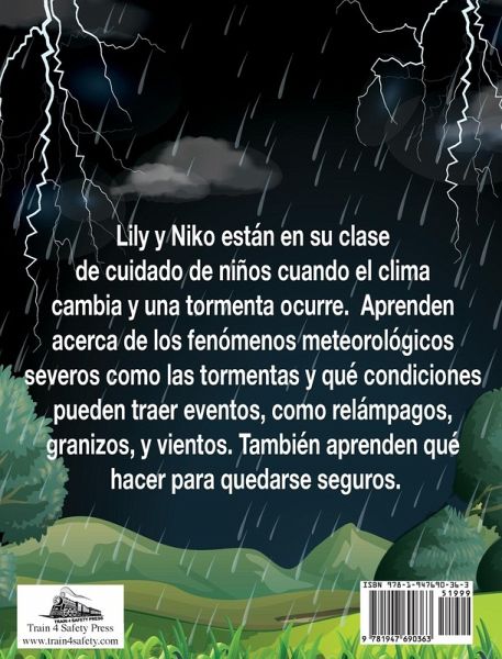 Mom's Choice Award Winner The Spanish Language Edition of Lions, Leopards, and Storms, Oh My! Lily y Niko están en su clase de cuidado de niños cuando el clima cambia y una tormenta ocurre. Uno de los padres de los niños es un meteorólogo y habla con los niños de las tormentas. Aprenden acerca de los fenómenos meteorológicos severos como tormentas y qué condiciones eventos pueden traer, como relámpagos, granizos, y vientos. También aprenden qué hacer para quedarse seguros. Lectura de este libro es una gran manera para los padres, proveedores de cuidado infantil y cuidadores hablar con niños pequeños y niños en edad preescolar tempestades de truenos de una manera sin miedo. Los niños pueden relacionar fácilmente con estos personajes y su historia da a los niños las herramientas y la información que necesitan para quedarse seguros cuando ocurre una tormenta.