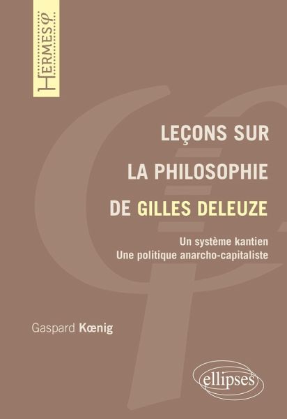 Deleuze fut le grand amour philosophique de mes années d'étudiant. Relisant son oeuvre dix ans plus tard, j'ai pris conscience que, sous ses airs d'enfant terrible, Deleuze avait en fait développé une métaphysique en bonne et due forme, tissant méticuleusement la toile d'un système clos, de facture kantienne. Et qu'en grattant le vernis marxiste, on découvrait une philosophie politique beaucoup plus nuancée, rejoignant même sur de nombreux points l'anarcho-capitalisme américain. De là est venue l'idée de ces leçons. À rebours de l'interprétation courante de Deleuze, je cherche à présenter, en m'appuyant avec autant de précision que possible sur ses textes, un auteur à la fois plus sage et plus profondément audacieux. Finalement, n'est-ce pas le meilleur hommage à rendre à Deleuze, que de se risquer à une lecture minoritaire de son oeuvre ? Rebelle et révolutionnaire, Gilles Deleuze ? Plutôt classique et libéral. Comme s'il nous avait caché, derrière la rhétorique de rigueur dans les années 70 et 80, l'originalité réelle de sa pensée.
