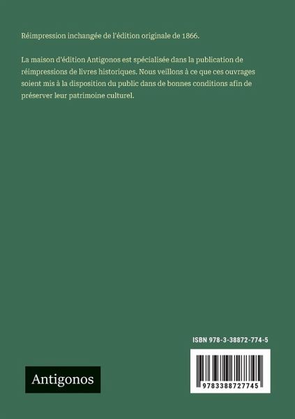 Réimpression inchangée de l'édition originale de 1866. La maison d'édition Antigonos est spécialisée dans la publication de réimpressions de livres historiques. Nous veillons à ce que ces ouvrages soient mis à la disposition du public dans de bonnes conditions afin de préserver leur patrimoine culturel.