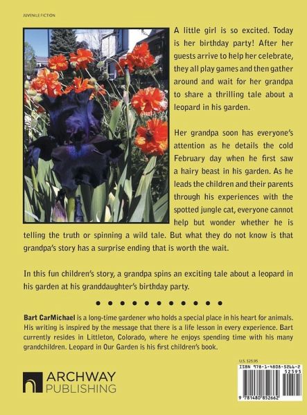 A little girl is so excited. Today is her birthday party! After her guests arrive to help her celebrate, they all play games and then gather around and wait for her grandpa to share a thrilling tale about a leopard in his garden. Her grandpa soon has everyone's attention as he details the cold February day when he first saw a hairy beast in his garden. As he leads the children and their parents through his experiences with the spotted jungle cat, everyone cannot help but wonder whether he is telling the truth or spinning a wild tale. But what they do not know is that grandpa's story has a surprise ending that is worth the wait. In this fun children's story, a grandpa spins an exciting tale about a leopard in his garden at his granddaughter's birthday party.