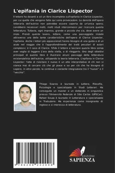 Il lettore ha davanti a sé un libro incompleto sull'epifania in Clarice Lispector, per cui quelle che vengono fatte qui sono provocazioni. La densità dell'opera letteraria dell'autrice non potrebbe essere coperta da un'unica opera; sarebbero necessari molti, molti studi interconnessi per ricercare questa letteratura. Tuttavia, ogni impresa, grande o piccola che sia, deve avere un inizio. Prendi questo lavoro, lettore, come una passeggiata iniziale attraverso una delle tante caratteristiche dell'opera di Clarice Lispector, l'epifania. Anche i lettori più appassionati hanno bisogno di una guida o di un aiuto nel viaggio che è l'approfondimento dei tratti peculiari di autori complessi; è il caso di Clarice. Sfido il lettore a lasciare questo libro senza aver voglia di leggere L'ora della stella, o di rileggerlo. Uno degli obiettivi principali di questo libro è illustrare alcuni passaggi della letteratura esistenzialista dell'autrice, utilizzando la teoria letteraria. L'epifania in Clarice Lispector: l'atto di rivisitare il nuovo è un atto interpretativo di chi non si stanca mai di cercare ciò che gli piace e sa per ciò che ha bisogno di sapere, in altre parole, la continua e costante integrazione tra il "nuovo" e il "vecchio".